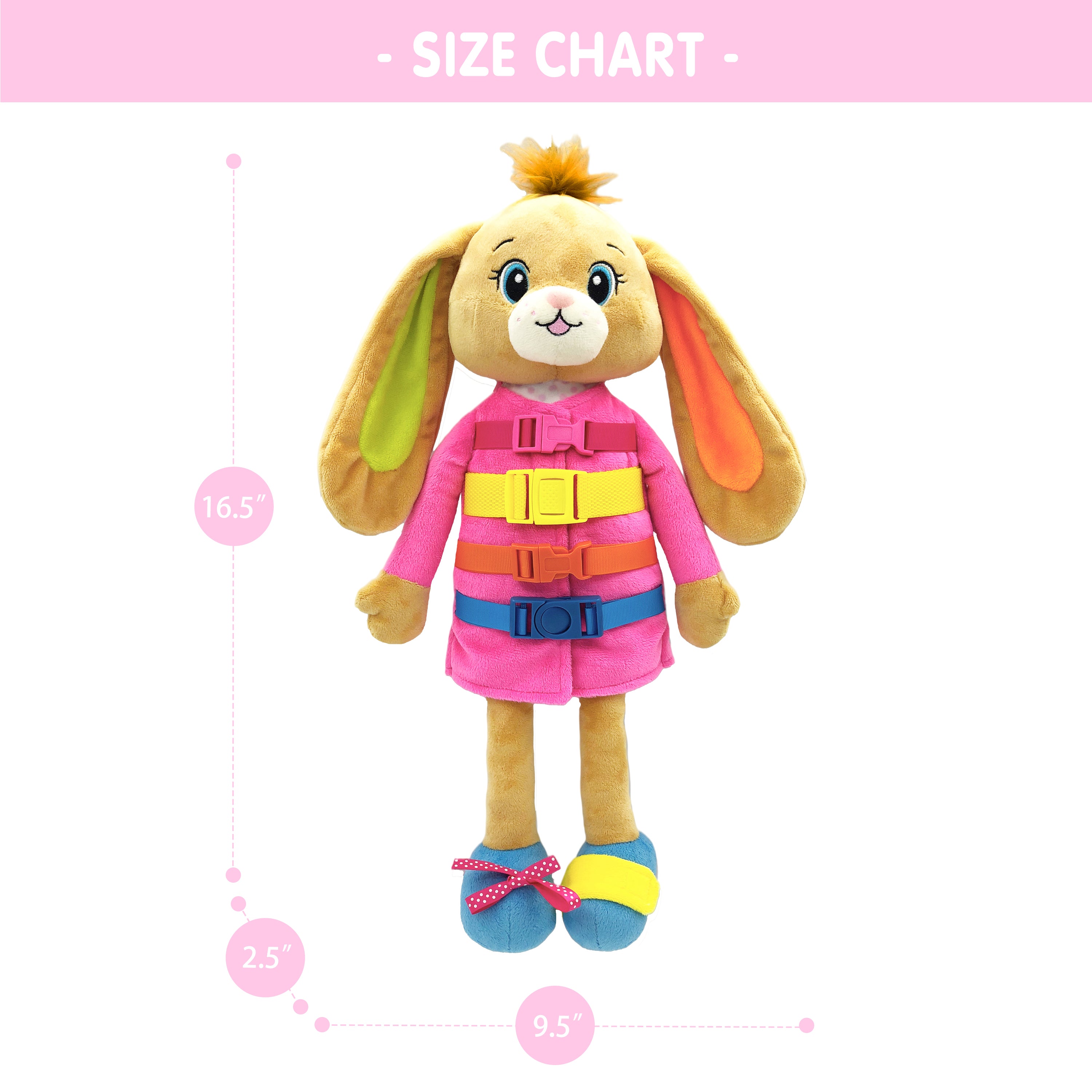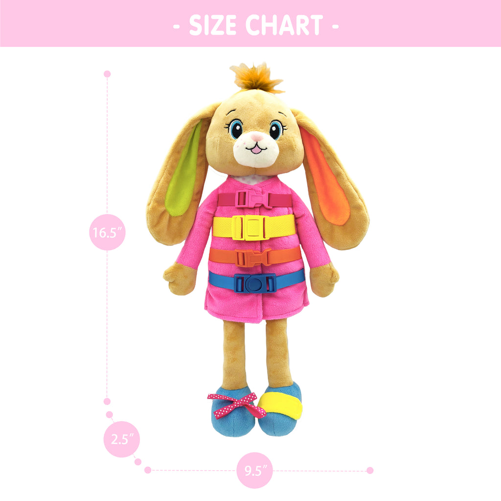 Dressy Friends Bunnie is an educational doll that helps toddlers develop cognitive and problem-solving skills, as well as learn how to dress themselves. With a cognitive board featuring numbers, shapes, and vegetables in vivid colors, Bunnie engages young learners. Additionally, Bunnie offers 5 getting dressed activities, including buckling, zipping, pushing, and tying. Inspired by the Montessori method of education, Bunnie enables toddlers to learn naturally by touching and working with materials, leading to the development of sensory and motor skills. Playing with Bunnie is a fun and effective way for kids to learn.