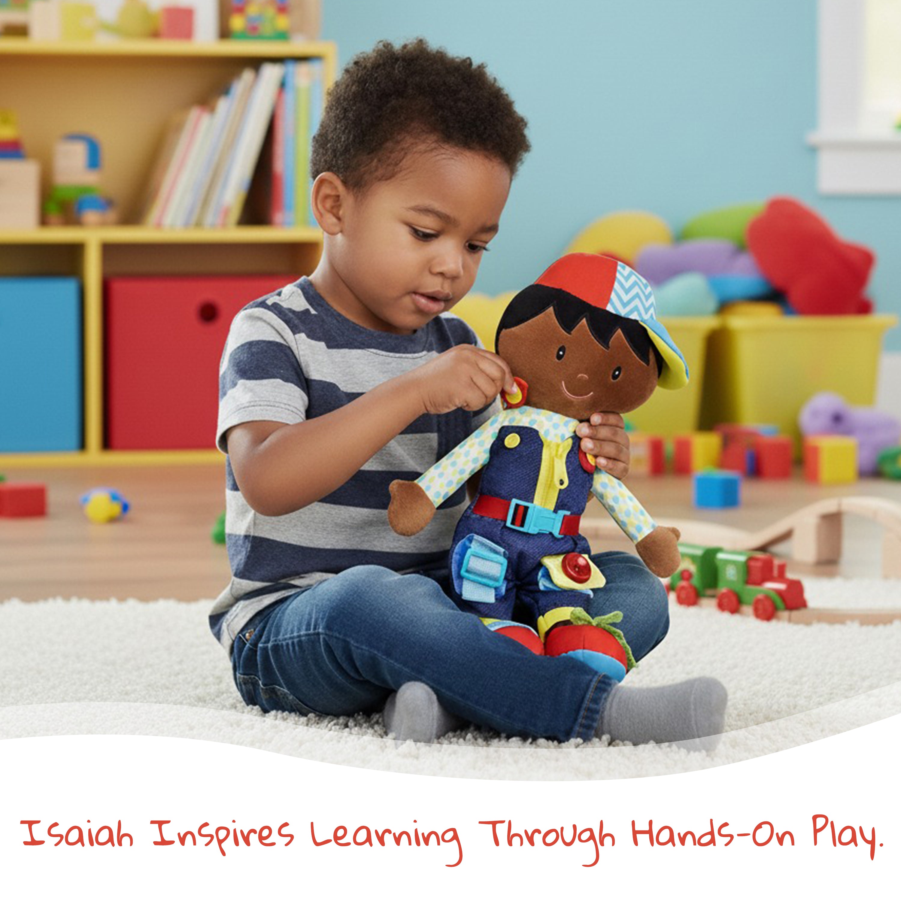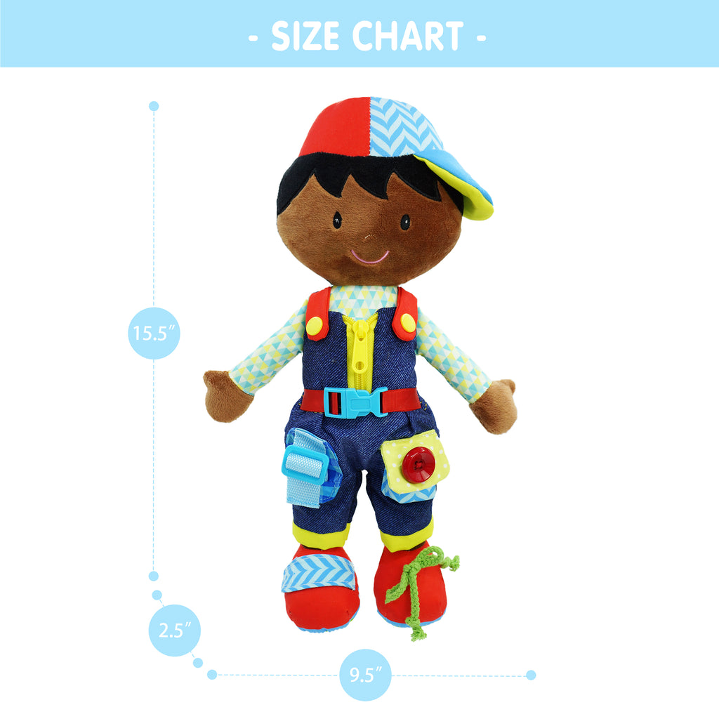 Dressy Friends Isaiah is a fun and educational doll that features 7 main getting dressed activities for kids, allowing them to practice skills such as snapping, hooking, fastening, buckling, zipping, looping, tying and more. Inspired by the Montessori method of education, Isaiah encourages toddlers to learn naturally by touching and working with the materials, helping them to develop sensory and motor skills. Kids can learn important skills while having fun with Isaiah.